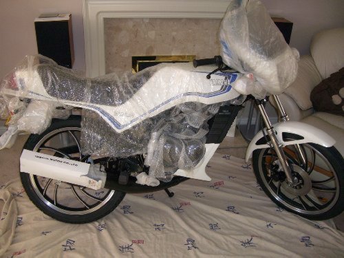 at the bubble wraped up white 80lc in his living room . This bike was build